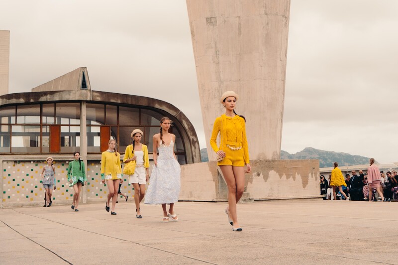 香奈儿于南法马赛公寓 (Cité radieuse)顶楼的Mamo艺术中心举办香奈儿最新2024/2025 Cruise度假系列。此次秀场是一处具有标誌性的现代公寓大楼,这是由现代建筑之父勒.科比意(Le Corbusier)于1947年至1952年间所建造的——勒.科比意在马赛设计了他的第一个具前瞻性的集合式住宅,这是以乌托邦为愿景所诞生的创新住宅,旨在容纳大量居民,建筑风格是以巨大的水泥柱支撑,现代风格实用主义的几何形状为轮廓的垂直村落。
