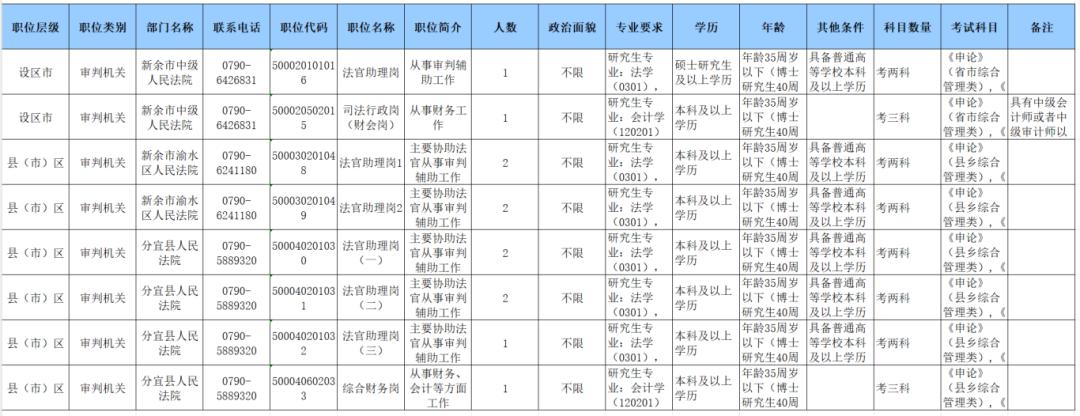 它来了 它来了 它来了  江西省2025年度 考录公务员工作即将启动! 2025年新余两级法院 共招录8个岗位共12人  招考职位   长按识别上方二维码 获得江西省2025年度考试 录用公务员职位表及相关附件!  日程安排 网上报名时间 2025年1月16日9:00 至1月21日17:00 网上缴费时间 1月16日9:00 至1月22日17:00 打印准考证 3月10日9:00 至14日17:00 公共科目笔试 3月15日 专业科目笔试 3月16日 公布笔试成绩 4月上中旬 公布第一批入闱名单和调剂公告 4月中旬 网上调剂、公布调剂入闱名单 4月中旬 资格审查、面试 4月底前 体测、体检 5月上旬前 考察、公示 6月中旬前 录用审批、备案 6月底前 省考笔试在即 大家加油复习 全!力!冲!刺!吧! 原标题:《省考来了!新余法院招12人!》 举报